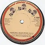 "Woman Don't You Cry For Me" is a song by English musician George Harrison, released as the opening track of his 1976 album Thirty Three & 1/3.