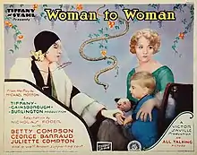Woman to Woman is an all-talking sound 1929 British drama film with music directed by Victor Saville and starring Betty Compson, George Barraud and Juliette Compton.[1] It is an adaptation of the 1921 play Woman to Woman by Michael Morton which had already been made in 1923 into a now-lost film.[2] The 1929 version survives and unrestored copies are available on unofficial DVDs and streaming services.[2]
