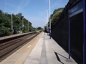 Wombwell railway station is a railway station serving the town of Wombwell in South Yorkshire, England. The station is 12 miles (19 km) north of Sheffield on the Hallam and Penistone Lines. The station was opened by the Midland Railway on 1 July 1897, and between 25 September 1950 and 20 February 1969 was known as Wombwell West to distinguish it from Wombwell's other railway station, Wombwell Central, which closed in 1959.[1]
