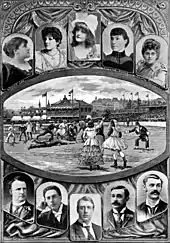 In 1894, a high profile costume match was played to raise funds for the Australian Dramatic and Musical Association which featured one of the earliest all-female teams which included Nellie Stewart, Florence Maude Young, Jennie Lee, Violet Varley and Flora Graupner. Played at the East Melbourne Cricket Ground the match attracted one of the largest crowds ever seen to the ground and was declared a draw and the media lauded the performance of the female team: "the ladies, in fact, carried all before them".[9] A repeat female vs male match was played at the Theatrical Carnival at the Royal Exhibition Building in 1895.[10]