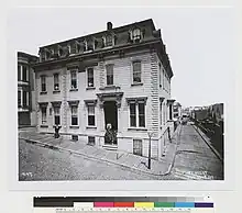 After the great quake and fire, Julia Morgan designed the replacement residence, a new three-story brick building with accommodations for 60 to 70 girls -- orphaned, rescued or abandoned. It was built at 940 Washington Street in San Francisco Chinatown and was dedicated by the Women's Home Missionary Society in 1912.[4] Meanwhile, the Chinese Methodist Church was rebuilt in 1911 on the corner of Washington and Stockton Streets at 920 Washington Street.[5] Later in the 1940s, the three-story brick building at 940 Washington Street, designed by Julia Morgan for the "Oriental Home", was renamed the Gum Moon Women's Residence.[6]