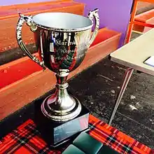- Valerie Fraser Trophy – The equivalent of the men's Camanachd Cup for the women's game. However a club need only win two games to win it. In order to increase the number of teams competing, Division Two teams were permitted entry in 2012. It has been sponsored by Peter Gow of Inverness for several years.