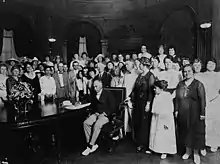 Women like Madeleine Liggett Clarke and Mary A. Kennedy began to hold "school for voters" which included classes on citizenship, history, law and other topics.[74][75] Fannie C. Williams set up a suffrage school at the city's Black YWCA.[76] Paid organizers went to women's homes to help prepare them for voting.[77] The Missouri League of Women Voters (LWV Missouri) was created in October 1919 with Edna Gellhorn as the first president.[78] The Missouri Woman Suffrage Association met at the Statler Hotel in St. Louis where the group changed its name to the LWV.[79] The meeting had 500 attendees, both men and women, and was accompanied by speeches.[79] The National League of Women Voters was established on February 14, 1920.[78] Marie Ruoff Byrum became the first woman voter in Missouri on August 31, 1920.[10]