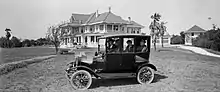 Governor Ferguson was reelected in 1916.[51] He began to agitate against the University of Texas (UT).[51] Ferguson felt that UT was an elitist institution and he wanted to take control of the board of regents, which he was able to do by January 1917.[51] The El Paso Equal Franchise League protested his actions against UT, saying they didn't want the school to become "part of governor Ferguson's political or financial machine."[52] Some alumni of UT called for Ferguson's impeachment.[53] In July 1917, Ferguson was indicted on charges of embezzlement and misuse of public funds.[53] In August, F. O. Fuller, the speaker of the Texas House of Representatives called a special session to consider impeaching Ferguson.[53] As legislators came into Austin, Jane Y. McCallum, other suffragists and even more conservative women organized protests on the Texas Capitol against Ferguson.[53] As part of the marathon sixteen hour protest, McCallum was one of the speakers who called Ferguson the "implacable foe of woman suffrage and of every great moral issue for which women stood."[53] Ferguson, who was an obstacle to women's suffrage, was impeached on August 25, 1917.[53]