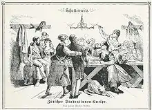 Soon the universities developed men's societies (so-called Männerbünde) with a corresponding subculture (compare for example the songs of the Carmina Burana). The uncontrolled actions of some students often led to conflicts with the city's inhabitants. Sometimes this could lead to the departure of entire groups of academics who then founded new universities elsewhere. Among the universities' intellectuals many rejected the ideas of clerical celibacy as well as marriage. They saw themselves in a competitive situation with the hereditary nobility, which found its expression in showing off their sexual triumphs and sexual assaults against women. In order to protect the citizens' daughters, the cities set up brothels.[8]