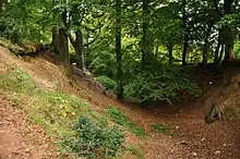 Part of the hillfort's earthworks