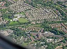 Woodley looking SE with the old J. G. Naylor abrasives mill factory at lower centre and Woodley railway station at left