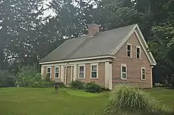 The Woodruff House stands east of downtown Southington, on the south side of Berlin Street (Connecticut Route 364) between Pleasant Street and Butternut Lane. It is a 1+1⁄2-story wood-frame structure, with a gable roof, central brick chimney, and clapboarded exterior. Its front facade is five bays wide, with corner pilasters rising to an entablature that runs beneath the eave. The centered entrance is flanked by sidelight windows and pilasters, and is topped by a corniced entablature. Interior features include 18th-century wide pine flooring, some original paneling, and three fireplaces. The entry vestibule, which commonly has a narrow winding staircase in houses of this age, was apparently built without one.[2]