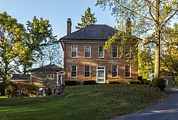 Woods Mill Farm is a historic home and farm complex located at Woodsboro, Frederick County, Maryland. It includes the Colonel Joseph Wood House and associated buildings. The house is an unusual example of an 18th-century brick, Georgian style manor house, built about 1770. It is a two-story brick dwelling with a hipped roof and inside end chimneys. The property also includes two distinctive outbuildings: a two-story, two-room stone and brick smokehouse with a gable roof and a brick end barn built about 1830. The original owner of this property was Col. Joseph Wood, founder of Woodsberry (now Woodsboro).[2]