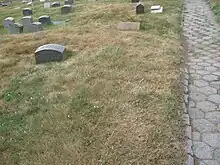 Unmarked grave of Woolson Morse (between Richard C. Locken at the left and the path at right) at Green-Wood Cemetery, Brooklyn, NY
