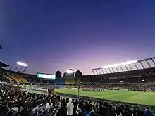 The original Workers' Stadium (simplified Chinese: ; traditional Chinese: ; pinyin: Gōngrén Tǐyùchǎng), often abbreviated as Gongti or Gong Ti (simplified Chinese: 工体; traditional Chinese: 工體; pinyin: Gōng Tǐ), was a multi-purpose stadium in Chaoyang District, Beijing, China. The stadium was built in 1959, and was renovated in 2004 (the concrete structure strengthened, a new rotating display screen and energy-saving devices installed). The stadium was closed for a complete rebuild in 2020 and reopened on 15 April 2023 as a new stadium built on the original site.[2][3][4] It had a capacity of 65,094 and covered a land area of 350,000 square metres (3,800,000 sq ft). It was one of the Ten Great Buildings constructed in 1959 for the tenth anniversary of the People's Republic of China.