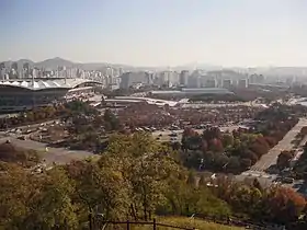 World Cup Park (Korean: 월드컵공원) is an ecological park built in Sangamdong-gil, in Seoul, South Korea. This place was built on May 1, 2002, to commemorate the 2002 Korea-Japan World Cup Games and the new millennium. World Cup Park is made up of five parks: Pyeonghwa (Peace) Park, Haneul (Sky) Park, Noeul (Sunset) Park, Nanjicheon Park, and Hangang Riverside Park.[1][2]