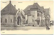 Worms station in 1910 with the pavilion for royals on the left and the main building on the right