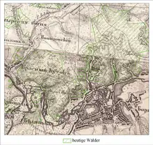 In the 1880s and 1890s the first major deforestation in the fourth section of the forest and in the northern part of the tenth section the deforestation continued into the 20th century.[6]