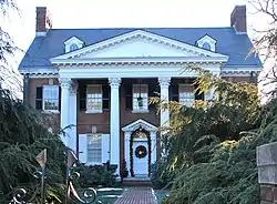 Wright House is a historic home located at Newark, New Castle County, Delaware. It was built in 1922 and is a 2+1⁄2-story E-shaped brick dwelling with a five-bay front facade. It is in the Colonial Revival style. It features a three-bay main portico with fluted Corinthian order columns and a frame porte cochere. The house was purchased by the University of Delaware after 1950 and serves as the home of the University President.[2]
