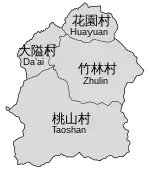 The township comprises four villages: Daai, Huayuan, Taoshan and Zhulin.