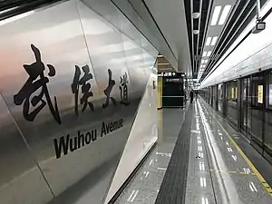 Wuhou Avenue (Chinese: 武侯大道) is a station on Line 7 of the Chengdu Metro in China. It was opened on 6 December 2017.[1][2]