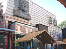 The museum is a three-story building house in a building surrounded by rows of checkered-shape patterns. A large aboriginal statue stands at the top of the museum building.[2]