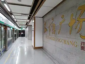 Wutangguangchang station (simplified Chinese: 五塘广场站; traditional Chinese: 五塘廣場站; pinyin: Wǔtángguǎngchǎng Zhàn) is a station of Line 3 of the Nanjing Metro. It started operations on 1 April 2015.[1][2] It is one of nine stations on Line 3 that are decorated with a Dream of the Red Chamber theme.[3][4] On 28 December 2022, the platform of Line 7 started operation.[5]