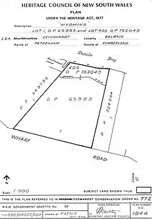 2. "Wyoming, 25 Wharf Rd, Birchgrove, NSW, Australia". Register of the National Estate. Department of the Environment and Energy. Retrieved 30 September 2018.