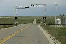 Wyoming Highway 341 starts its southern end in the community of Arvada near Sheridan County Route 38 (Wild Horse Road) and Sheridan County Route 273 (Upper Powder River Road).[2] WYO 341 actually begins just short of the Arvada city limits.[3] Highway 341 travels north, perpendicular to the Burlington Northern & Santa Fe Railroad before crossing it. WYO 341 ends at just under 3.2 miles at US 14/US 16 three miles north of Arvada.[1][2]
