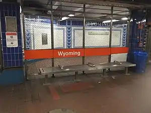 Wyoming station is a SEPTA subway stop in Philadelphia. It serves the Broad Street Line and is located in the Logan neighborhood of North Philadelphia at 4700 North Broad Street and Wyoming Avenue. This is a local station, and thus has four tracks, with only the outer two being served. There are separate fare control areas for the northbound and southbound platforms, and no crossover exists.