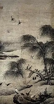 Xia Shuwen, Birds Flocking at a Willow Tree Embankment, Liaoning Provincial Museum