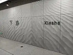 Xiasha[1] (Chinese: 下沙; pinyin: Xiàshā), formerly known as West Heli Road (simplified Chinese: 鹤立西路; traditional Chinese: 鶴立西路; pinyin: Hèlì Xīlù), is a Shanghai Metro station located on Line 18 in Pudong, Shanghai. Located at the intersection of West Heli Road and Hunan Highway, the station opened on 26 December 2020.[2] It is part of the first section of Line 18 to become operational, a southern segment of phase one of the line which consists of eight stations between Yuqiao and Hangtou.[3][4]