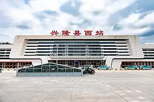 Xinglongxian West railway station (Chinese: 兴隆县西站; pinyin: Xīnglóngxiàn Xī Zhàn; lit. 'Xinglong County West railway station')[1] is a railway station of Beijing-Shenyang high-speed railway located in Xinglong County, Chengde, Hebei Province, People's Republic of China. It was opened on 22 January 2021.[2]