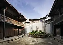 Xizhou (Chinese: 喜洲) is a town located 20 km (12 mi) north of Dali Old Town in Dali City, part of the Dali Bai Autonomous Prefecture in northwestern Yunnan, China. The town consists of 13 small villages with a combined population estimated at 54,779,[1] mostly consisting of Bai people with a small population of Hui and Han residents. Xizhou is located about 1 km (0.62 mi) from the shores of Erhai Lake to the east, and 2 km (1.2 mi) to the Cang Mountain to the west. Xizhou has been historically important as a trading post along the Tea Horse Road, it was once home to a landing strip and radio station for the Flying Tigers during WWII, has been home to notable rulers and governors of local polities past and present, and has gained notoriety in modernity for its high concentration of preserved and restored traditional Bai architecture and protected heritage sites.