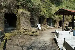 Yagura (やぐら・窟・岩倉・矢倉・矢蔵・谷倉・屋倉, etc.) are artificial caves used during the Middle Ages in Kamakura, Kanagawa Prefecture, Japan, as tombs and cenotaphs.[1][2] It is likely that they were used only as tombs in the beginning, and were later used as cenotaphs.[2] The dead are mostly from the samurai class, but the names of priests and artisans have also been found.[3] These tombs are extremely numerous in the hills surrounding Kamakura, and estimates of their number range from 1,500 to over 5,000. The total number will remain unknown, as many have been destroyed and others may not yet have been found.[4]