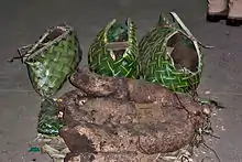 Yam[48] is, along with cassava and taro, a staple food, and is consumed boiled, roasted in a lovo, or steamed with fish or meat in curry sauce or coconut milk and served with rice. The cost of yam is higher due to the difficulty in farming and relatively low volume of production.[48]