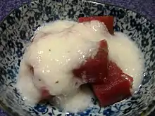Yamakake, Japanese dish prepared from tororo (D. polystachya) and maguro (tuna)