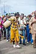 The New Yam festival is a highly captivating art event. The colourful festival is a visual spectacle of coherence, of dance, of joy and feasting, an annual display for community members, to mark the end of the cultivation season, a festival where the people express their gratitude to those that helped them reap a bountiful harvest.[15][16]