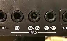 | 14 | 14 | 6.35mm TRS | 3 zone (piezo/switch) for Yamaha 3 zone pads (cymbal or drum) |