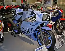 The FZ750 engine mounted in a Bimota chassis as the Bimota SB4 placed first in the inaugural Superbike World Championship round in 1987.[11][12][13]