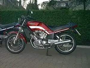 The Yamaha XZ550 'Vision' is a 550 cc V-twin, shaft-driven sport touring motorcycle produced by Yamaha in 1982-1983. It was powered by a 4 stroke 70° liquid cooled 4 valve DOHC engine, and featured a trailing front axle and monoshock single swingarm rear. With a range of innovative technology for its class, nimble handling, and bold styling, it was widely celebrated by the motorcycle press on its introduction as a bike ahead of its time.