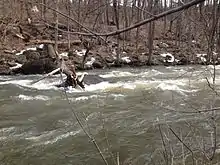 The main fish cruising its waters are white sucker (Castostomus commersonii) and Cyprinidae; more polluted areas are occupied by brown bullhead (Ameiurus nebulosus).[6] Species sought after for fishing include muskellunge (Esox masquinongy), Esox, black bass (Micropterus sp.), Sander, yellow perch (Perca flavescens), pumpkinseed (Lepomis gibbosus) and mud cat. Over the years the species added to the river for increase sport are the brown trout (Salmo trutta), rainbow trout (Oncorynchus mykiss), muskellunge, Sander, yellow perch, brown bullhead, smallmouth bass (Micropterus dolomieu), and brook trout (Salvelinus fontinalis).[7]