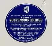 - ↑ Coates, Liz (10 March 2016). "Legacy and memory event marks Suspension Bridge disaster". Great Yarmouth Mercury. Retrieved 22 January 2019.