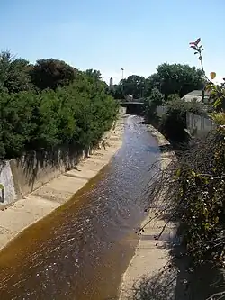 It is a seasonal watercourse with highly varying levels of flow, often swelling in the winter months and prone to flash flooding, though it is not unusual for its flow (and that of its tributaries) to at times stop altogether.