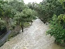 During the 1960s, the river through the Ballarat CBD was re-routed, concreted and built over. As a result, it now forms an underground drain running under Grenville Street. Many other parts of the river also became wide and deep concrete stormwater drains. Several stretches of the river remain, however in its natural bush and parkland setting. Since the 1980s, major initiatives have been undertaken to restore the river's state and vegetation and several natural wetlands have also been re-established along its course.[12] The river suffered flash flooding during the 2010 and the 2011 Victorian floods. A Victorian Government–funded A$1 million clean up of the river over three years was announced in July 2013; yet by May 2014 problems of sewage contamination remained a problem near Ballarat.[13][14]