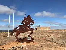 A Light Horse Memorial silhouette statue was placed on the rock to commemorate the Anzac centenary and is where Anzac Day services are held at dawn to honour those members of the Light Horse Brigade from the local area who didn’t return from the First World War.[1] The memorial statue was designed by Brendon Kalnins.