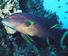 1. 1 2 3 4 5 Nair, R.; Samoilys, M.; Cabanban, A.S. (2018). "Variola louti". IUCN Red List of Threatened Species. 2018: e.T132738A100572909. doi:10.2305/IUCN.UK.2018-2.RLTS.T132738A100572909.en. Retrieved 19 November 2021.