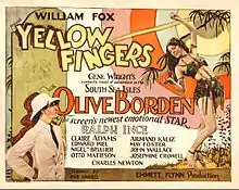 Yellow Fingers is a 1926 American silent drama film directed by Emmett J. Flynn and written by Eve Unsell. The film stars Olive Borden, Ralph Ince, Claire Adams, Edward Peil, Sr., Otto Matieson, and Nigel De Brulier. The film was released on March 21, 1926, by Fox Film Corporation.[1][2][3][4]