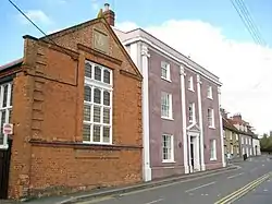 ![]() Yeomanry House (on the right in dull pink render), adjoined by the Masonic Hall (on the left in red brick) | |