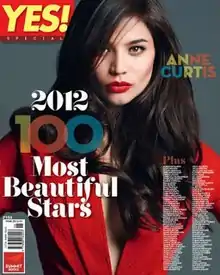 From 2007 to 2018, the magazine lists down the Philippines' 100 Most Beautiful Stars. Among the celebrities who topped the list include Kris Aquino, Sarah Geronimo, Judy Ann Santos, KC Concepcion, Marian Rivera, Kim Chiu, John Lloyd Cruz, Anne Curtis, Julia Montes, Kathryn Bernardo, Alden Richards & Maine Mendoza of AlDub, and Daniel Padilla.[7][8][9] It also lists down top fashionable showbiz personalities, which include Lucy Torres-Gomez, Maricel Soriano, Gretchen Barretto and Agot Isidro.[10]