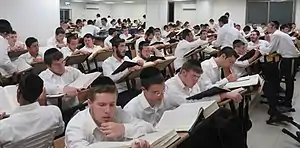 The day in yeshiva gedolahs (as well as in many mesivtas) is split into three parts, each one known as a seder (plural, sedarim). "First seder" or "morning seder" generally consists of in-depth Talmud study, known as iyun. This is done both in chavrusa fashion where students pair up to learn, and in a shiur where a rabbi expounds on the Talmud and its commentaries. "Second seder" or "afternoon seder" is usually dedicated to learning Talmud b'kius - covering ground without delving into the commentaries.[2] The learning at "Night seder", conducted after dinner and continuing into the night, differs between yeshivas, sometimes with the students continuing their studies from first seder and sometimes learning a different gemara than they do the rest of the day. Also incorporated into the day's schedule is a Halakha seder (often learning the Mishnah Berurah) and Musar seder, dedicated to learning musar (notably, the Brisk yeshivas in Jerusalem don't have official musar sedarim).[3]