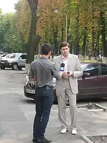 Yevgen Igorovich Tsarkov (Ukrainian: Євген Ігорович Царьков; Russian: Евге́ний И́горевич Царько́в; born 14 October 1974 in Kommunarsk Luhansk Oblast, Soviet Union) is a politician, Member of Verkhovna Rada[1] of the VI сonvocation, first secretary of the Odesa Oblast committee of the Communist Party of Ukraine chairman of the International Union of Komsomol Organizations - Allunion Lenin Communist Union of Youth (2009), 2005—2009 first secretary of the Central Committee of Komsomol, member of the Central Committee of the Communist Party of Ukraine (since 2005), member of the Soviet of the Union of Communist Parties – Communist Party of the Soviet Union (since 2009). Advisor of the first vicechairman of the Verkhovna Rada(2013). Secretary of the Union of Communist Parties – Communist Party of the Soviet Union (since 2014). Member of the presidium of the Central committee of the Communist Party of Ukraine (since 2014). Opponents have accused him of Ukrainaphobic statements. Thus he has claimed that "NKVD squashed nationalists insufficiently".[2][3] He declares himself an opponent of capitalism, NATO, fascism and nationalism. He supports the traditional family and once initiated a legislation proposal for prohibiting the "propaganda of homosexuality".