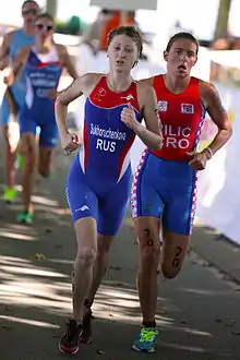 ![]() Yevgeniya Sukhoruchenkova at the Triathlon Premium European Cup in Alanya, 2009. | |