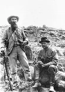 An excellent marksman and horseman, Maximov's skills with guns and horses always impressed the Boers who saw good horsemanship and marksmanship as admirable talents in a man.[11] The Boers generally disliked the foreign volunteers who came to fight with them against the British, and only accepted as equals those who showed exceptional skills and bravery together with an willingness to embrace aspects of Afrikaner culture.[19] Maximov ability to shoot springboks from a moving train at the distance of 800 meters without ever missing as he did several times on a train ride from Pretoria to Bloemfontein was considered to be phenomenal.[17] As several other burghers (Afrikaans for citizens) had also tried during the same train ride to shoot springboks out on the veld and missed, Maximov's marksmanship won him the respect of the Boers.[19] Maximov was one of the few foreign volunteers who were ever truly embraced by the Boers.[19] Maximov's ability to tame and ride horses considered untamable also won him admiration from the Boers, most of whom lived out on the veld and whose culture was deeply centered around horses.[20] Maximov wore a Boer style uniform with a slough hat and a bandolier with the rest of his uniform left to himself to design as was normal with the Boers.[21] Deeply fascinated with South Africa, Maximov took numerous photographs of the South African countryside, cities, and towns together with photographs of Boer commanders and the Zulu people, whom he was interested in, and which were later found to be in the possession of his son Alexander, a retired mining engineer living in Leningrad in the 1970s.[22]
